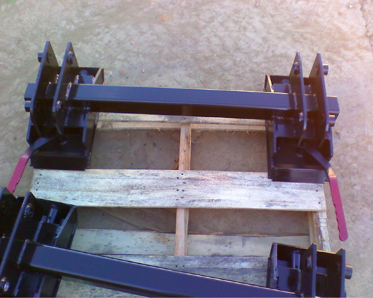 Our skid steer conversion changes your existing pin on loader to the universal skid steer quick attach. Think of the possibilities you will have with your older style loader. You will be able to use any of the hundreds of skid steer attachments available. Get the most of your loader for the money. All tractor owners deserve to have the same attachments a skid steer loader has for the same money. No need to pay someone higher prices for custom work on every attachment. Call us today, and we can convert your loader. We just need a few measurements from you.