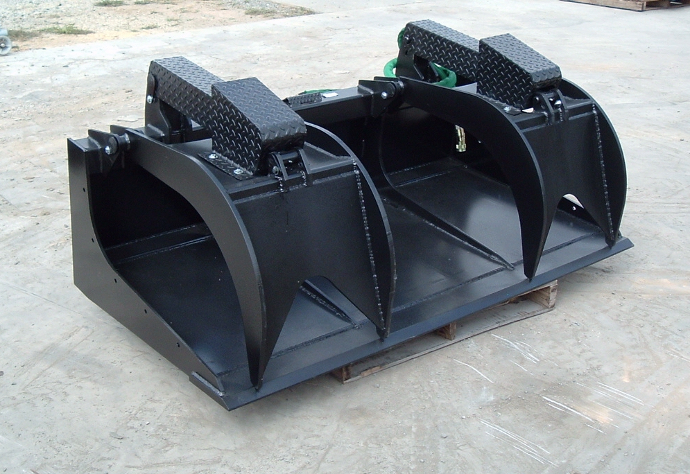 Our Extreme Duty Grapple Bucket is as good as it gets. Take a look at the pictures to the right (click them to enlarge). We recommend a 60 HP machine or bigger to operate this piece of equipment.
