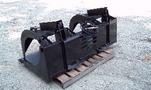 Our Heavy Duty Grapple Bucket cylinders have a 2" bore and a 10" stroke, and operate independently to adjust for uneven loads. The hydraulic lines are routed inside the tubing to prevent tears. Our grapple buckets are built with top quality steel, oversized points and bushings, and every pivot point has grease fittings to ensure the longest life of the grapple. The cutting edge is 3/4" thick and six inches wide. We offer a bolt on cutting edge as an option. There are tines under the bucket (like a root grapple), that way you do not wear out your bucket. Don't be fooled by others who just put grapples on a bucket and call it a grapple bucket. The grapple opening is 3 feet 2 inches, and has a depth of 34 inches. Pricing and sizes are below. Visa, Master Card, Discover, American Express, Checks and Money orders are accepted. Now powder coated for a long lasting finish.